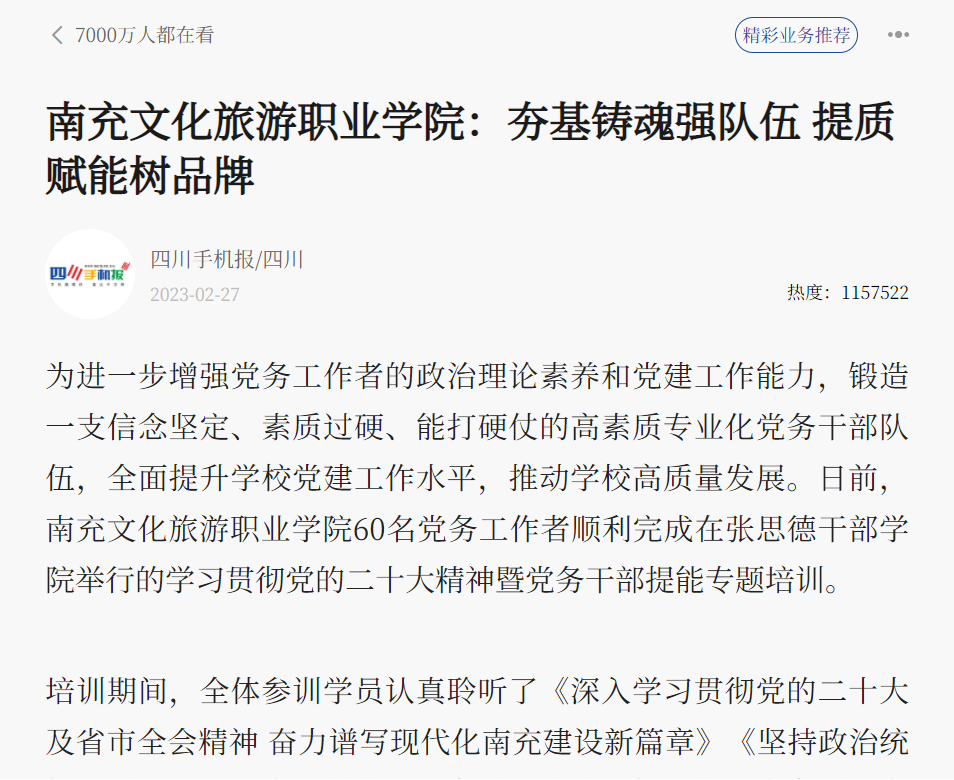 【四川手机报】南充文化旅游职业学院:夯基铸魂强队伍 提质赋能树品牌