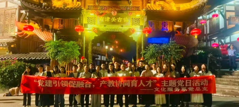 为深入学习贯彻党的二十大精神,落实职业教育改革与产教融合战略,拓宽学生实训就业渠道,擦亮文化服务系党总支“文心匠行、旅路先锋”党建品牌,10月14日下午,学院党委委员、党委办公室主任、文化服务系党总支书记王印杰率队赴阆中南津关古镇开展“党建引领促融合,产教协同育人才”特色主题党日(扩大)活动。文化服务系党总支副书记刘旭、文化服务系教学负责人邵照芳、文化服务教研室主任、专业负责人及部分党员教师参加活动。