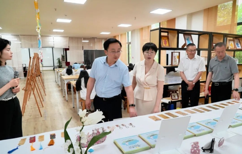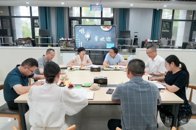 会前,吴城林一行先后参观了我校东、西实训室,皮影、剪纸非遗工作室,图书馆,一站式学生社区,下午还考察了我校校外实训基地。