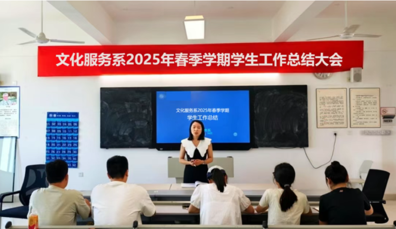 为贯彻落实《教育强国建设规划纲要(2024—2035年)》,全面落实立德树人根本任务,系统总结2025年春季学期学生工作成效,精心谋划2025年秋季学期工作重点,进一步加强辅导员队伍建设,近日,我系在文锦楼301教室召开2025年春季学期学生工作总结大会,文化服务系党总支副书记刘旭、全体辅导员参加会议。
