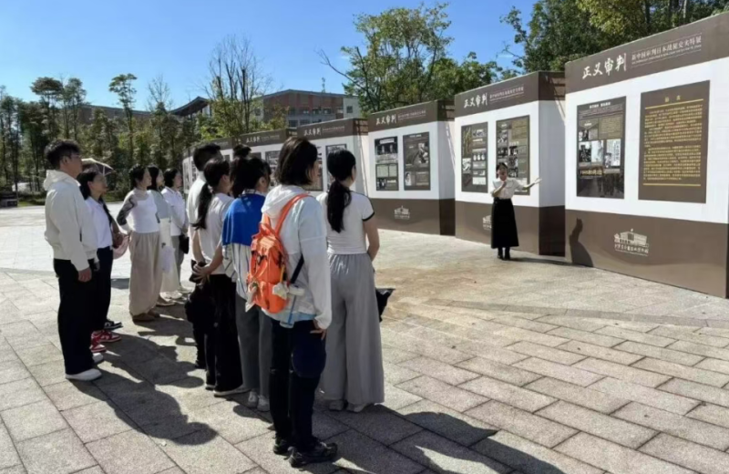 为纪念中国人民抗日战争暨世界反法西斯战争胜利80周年,10月15日,文化服务系教师党支部组织党员代表前往校训广场集中观摩《正义审判——新中国审判日本战犯史实特展》。